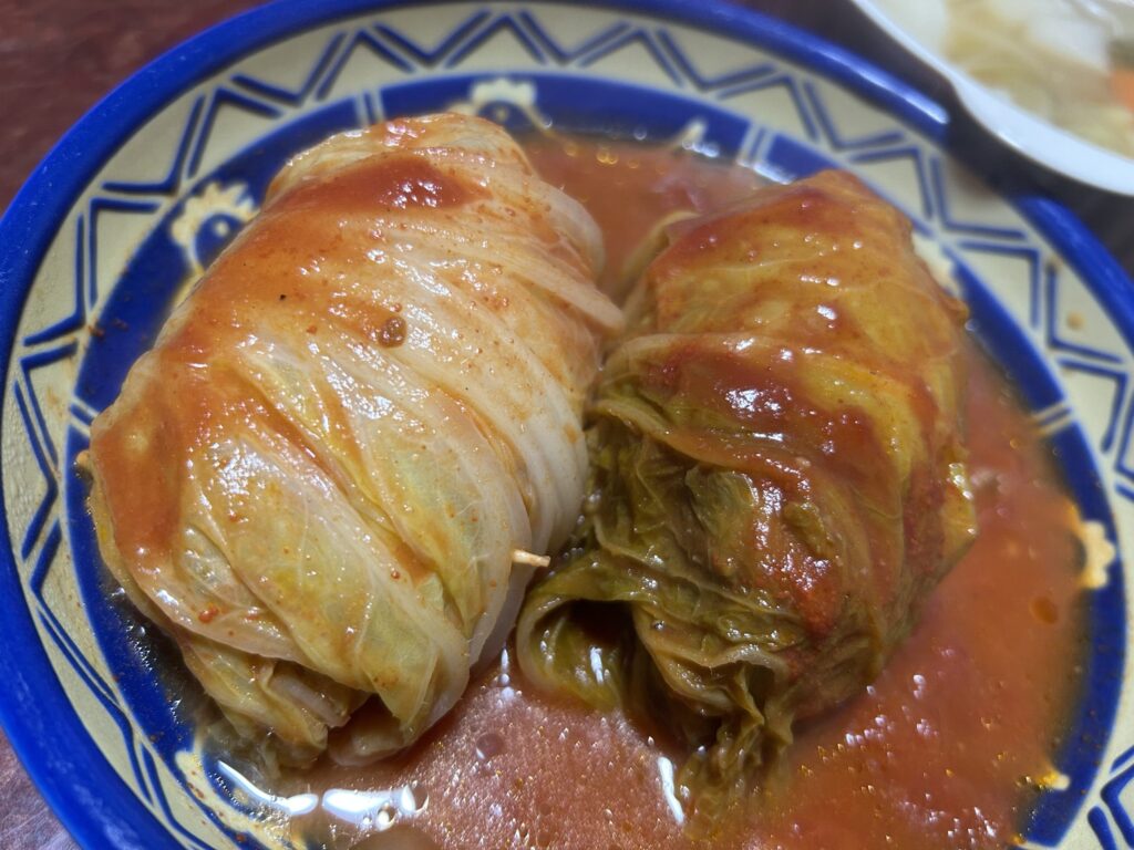 夫は肉が食べたいとうるさい。ロール白菜にも肉が入っているからと伝えしぶしぶ了承した。食べたら美味しいし、お腹いっぱいだといい満足そうでした。すべての品に白菜を取り入れた白菜消費メニューです。