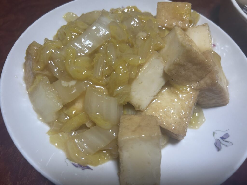 ・厚揚げと白菜と炒めて、鶏がらスープの素、醤油、酒、砂糖で味付け